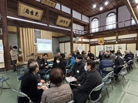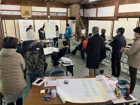 | 今回ご参加頂いている方の多くは、ESDや地域づくりの人づくりに関するご関心のある方です。折角の機会ですので、ご参加者同士でお話ししていただく機会として「ぺちゃくちゃタイム」を設けました。 | ![]() |