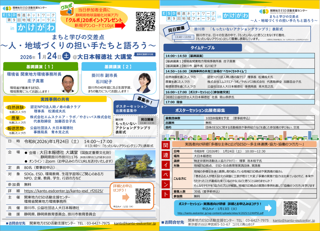 | 主催 | 関東地方ESD活動支援センター、環境省関東地方環境事務所 |